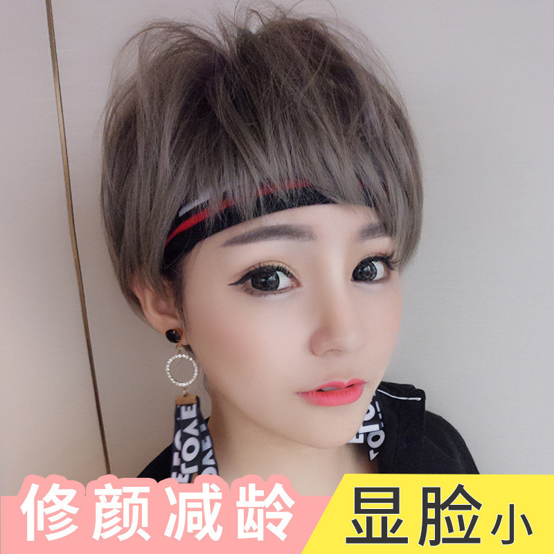 Short Hair Wig Woman Short Hair Cool Fashion Handsome Personality Korea Nets Red Tide Flow All Headgear Short Hair Repair Face Round Face