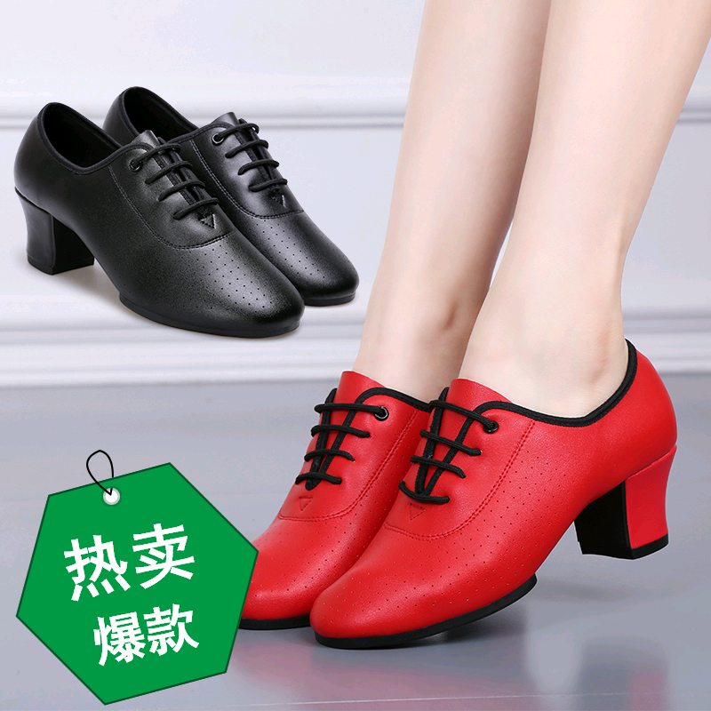 Leather latin dance shoes female adult modern dance shoes female beginners practice shoes dancing shoes female soft bottom black M201
