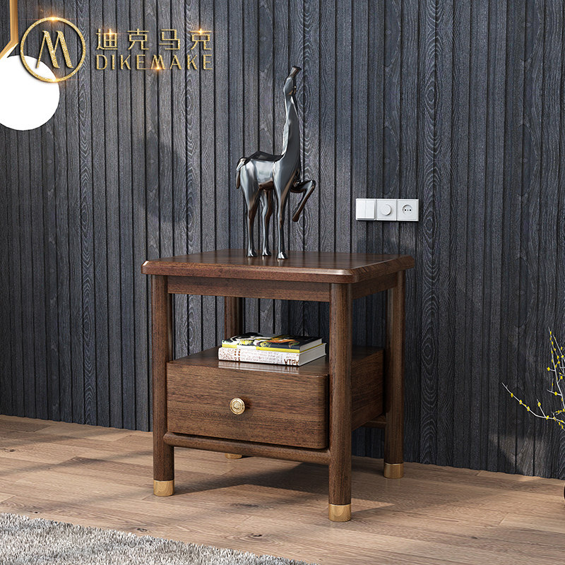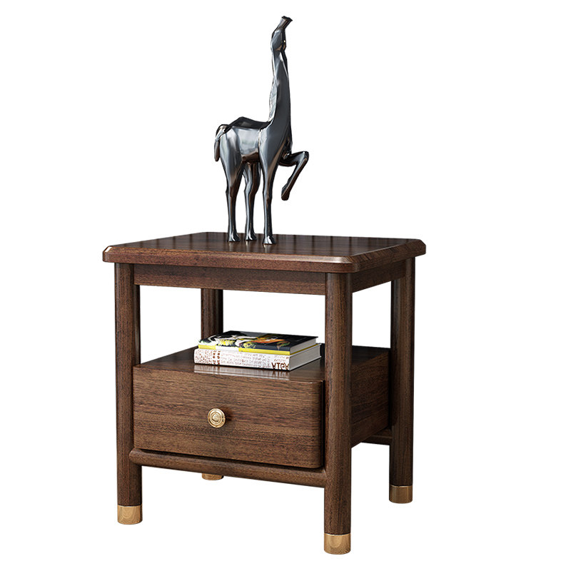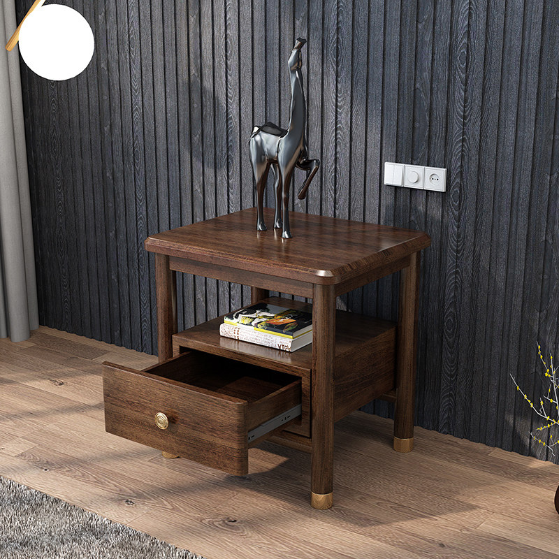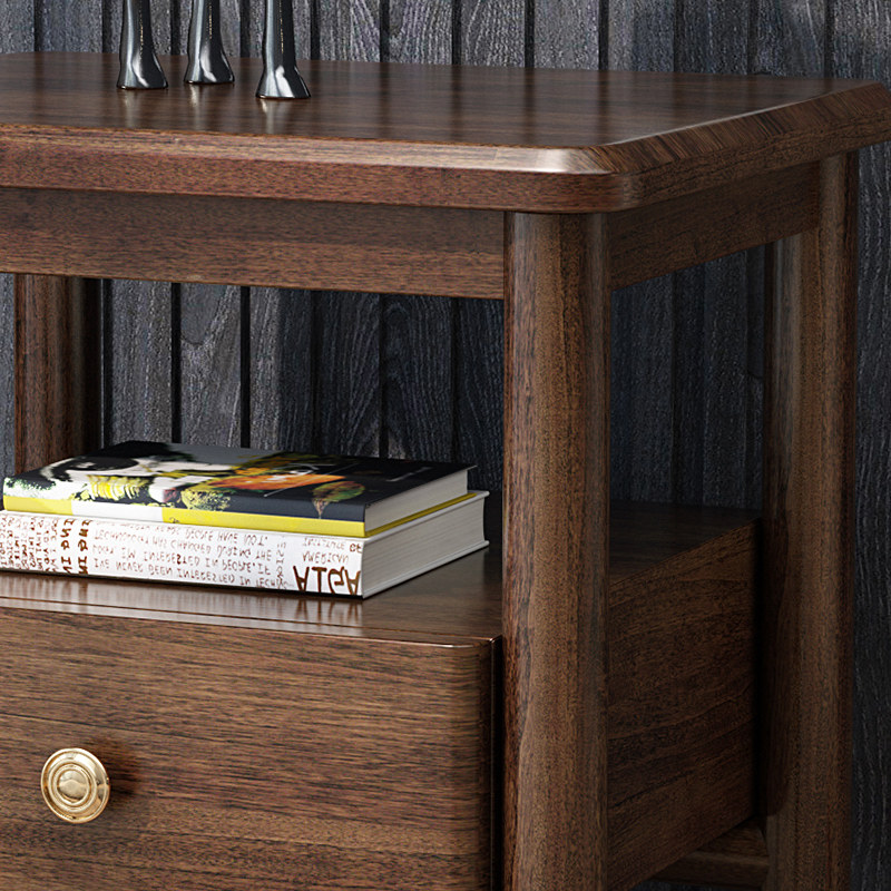 Solid Wood Bed Head Cabinet Walnuts Wood Color Modern Brief About Bedroom Side Cabinet Log Nordic Light Lavish Single Pumping Storage High-Foot Cabinet