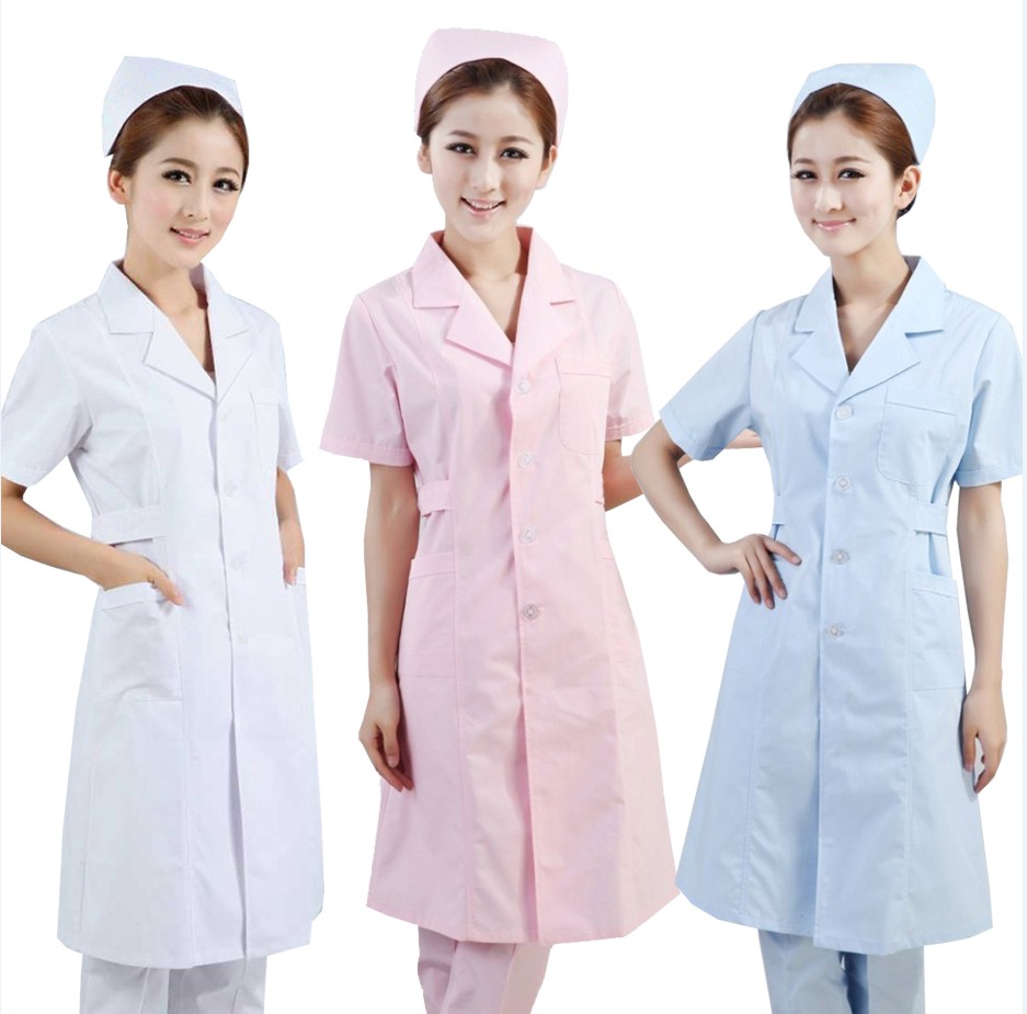 Fertilized plus size nurse clothes custom-made extra large white powder blue doll collar nurse clothes thick and thin