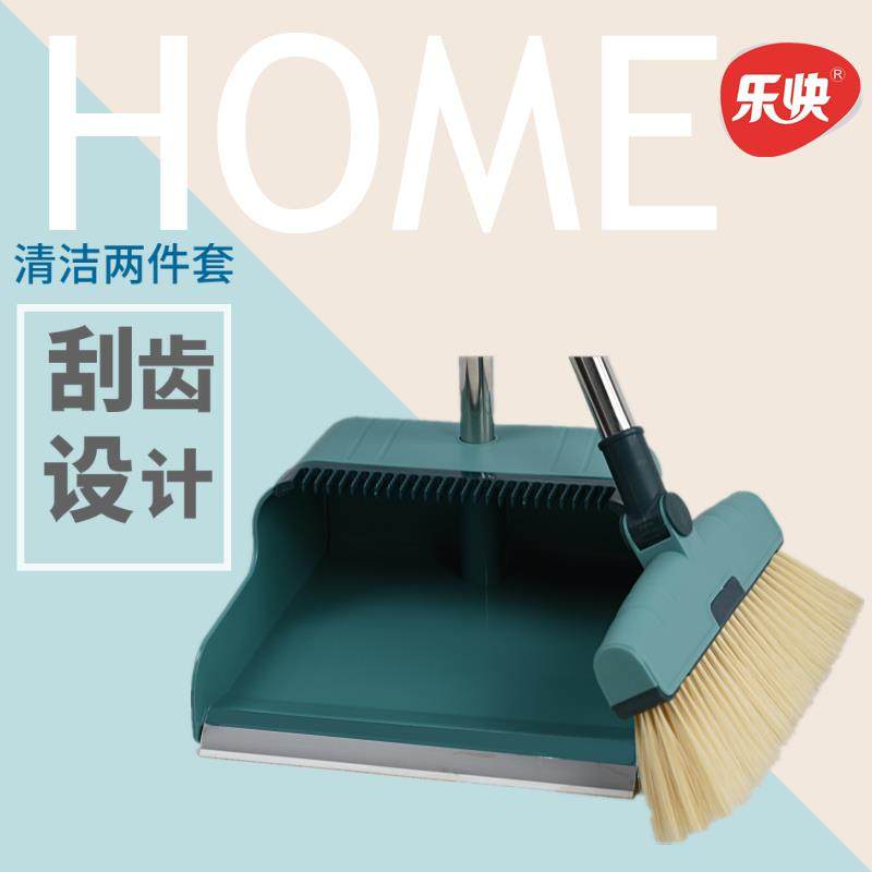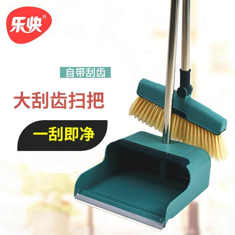 Lequick dazzling stainless steel can turn to sweep the dustpan cover sweep with scraped tooth pinch soft hair broom 2 pieces combination
