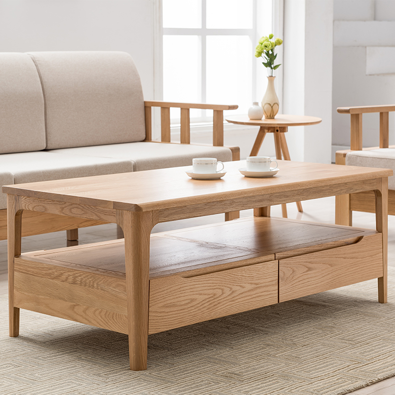 Japanese-style all solid wood coffee table small apartment Nordic log drawer coffee table simple modern white oak living room tea table