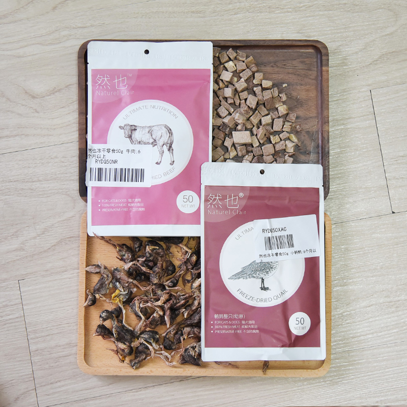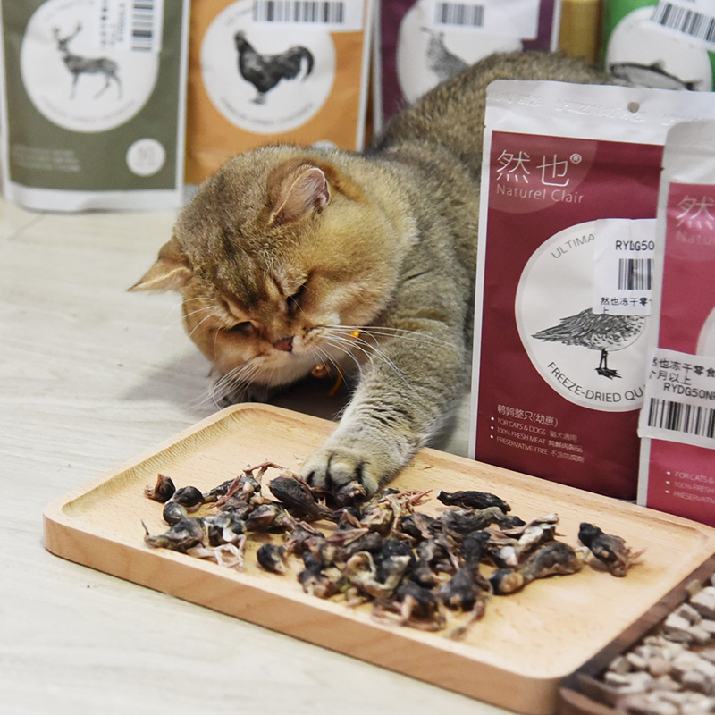 Naturel Clair in China is also freezing dry cat snacks, a whole quail cub of about 36 grams.]