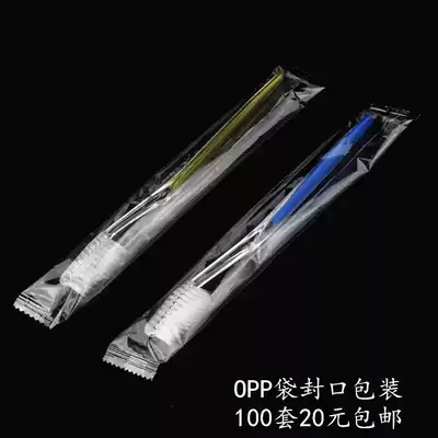 High-end soft film straw toothbrush Yellow soft film packaging two-color toothbrush Blue transparent simple single two-color toothbrush blue VIP bag two-color toothbrush Blue boxed pointed hair teeth Blue soft film long comb (beige)