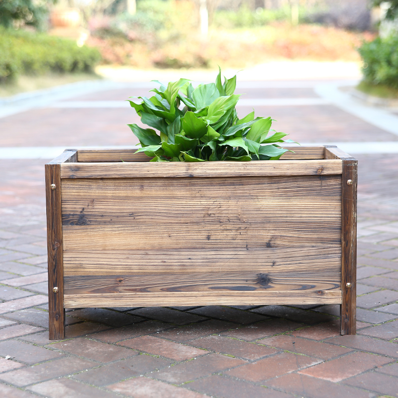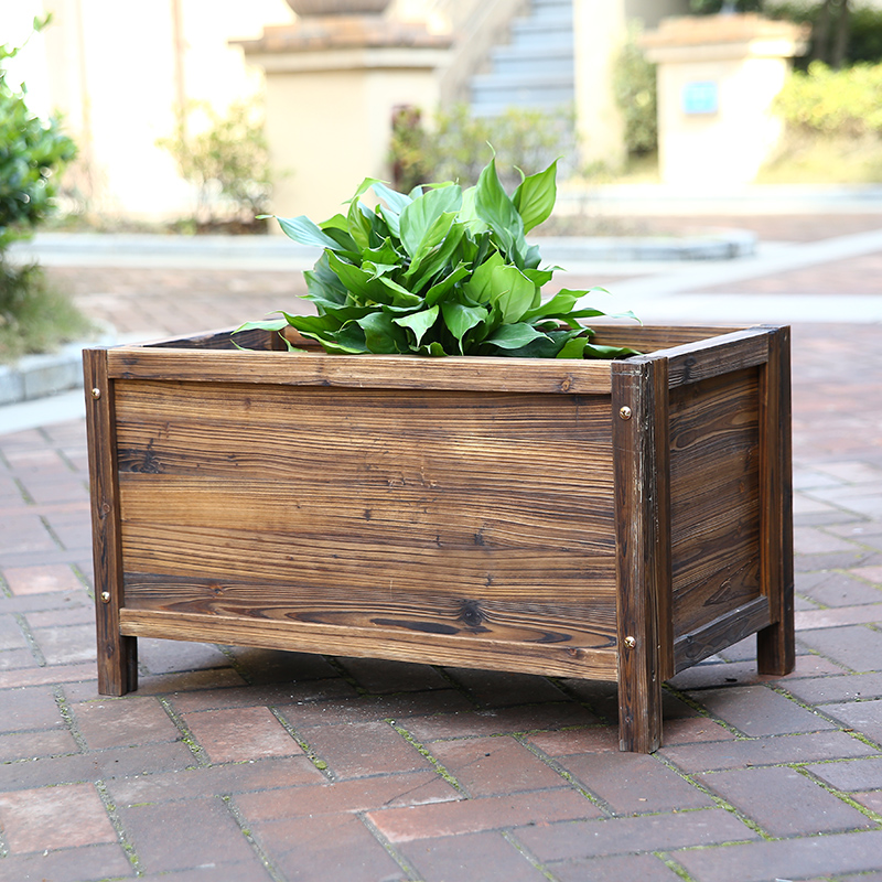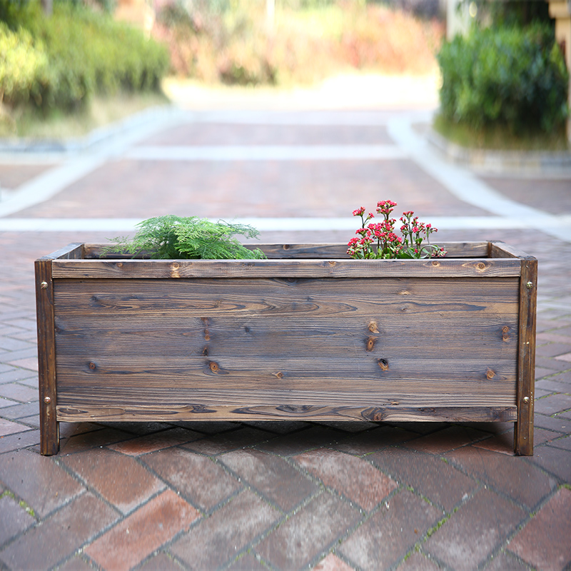 Carbonized anti-corrosion wood flower box Flower pot flower trough Balcony courtyard outdoor rectangular siding seamless flower pot planting flower bucket