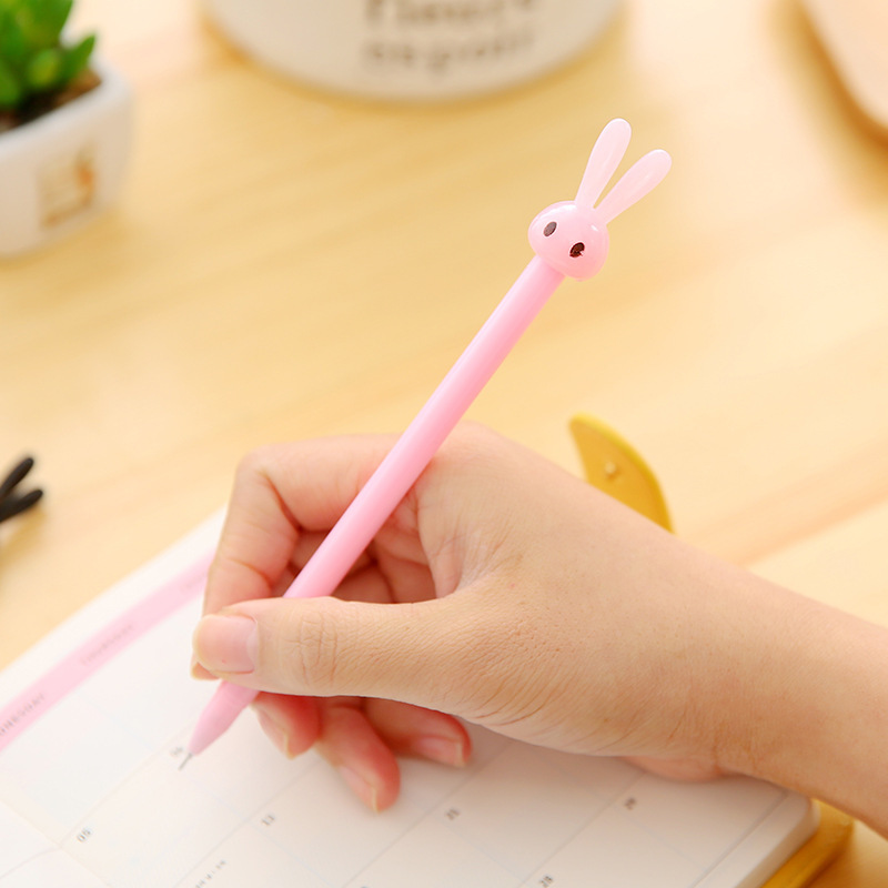 Candy long-eared rabbit cartoon creative gel pen Korean water-based pen signature pen female cute black pen student stationery 5 packs student gel pen cute creation girl heart student