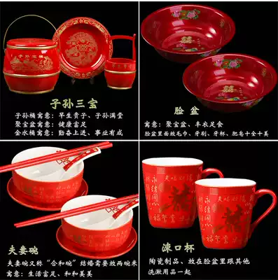 Mandarin duck cornucopia 1 pair of toast pots 1 set of Baijia Xi 8-piece bowls 1 set of copper Wang Basin 1 (send 5 electronic lights)Yongjie concentric thermos 2 0L(1 pair)Golden boy jade doll 1 pair of bed brush 1 pair