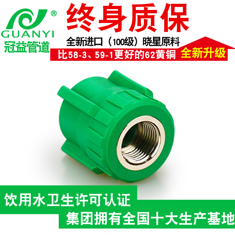 Full copper thickened green PPR water pipe inner wire direct internal tooth joint fittings pipe fitting hot melt pipe 4 points 20 6 points