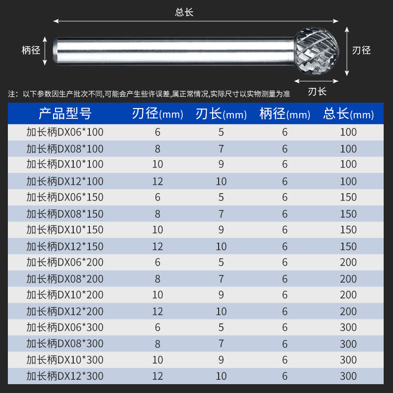 Golden Eagle D-type extended handle double sink carbide rotary file tungsten steel milling cutter grinding head woodworking metal carving 6mm