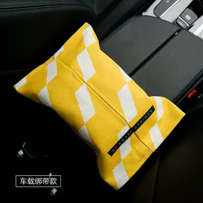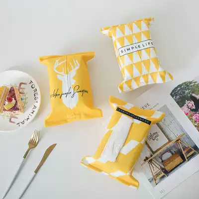 Design texture yellow geometry car tissue box Ins Nordic cotton and linen extraction type toilet paper cover car dining room extraction type sanitary paper box cover