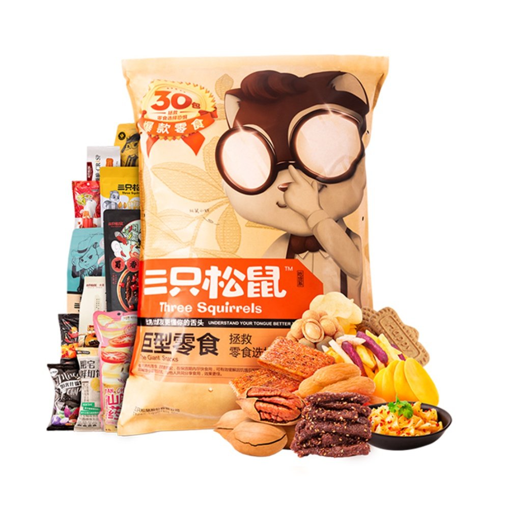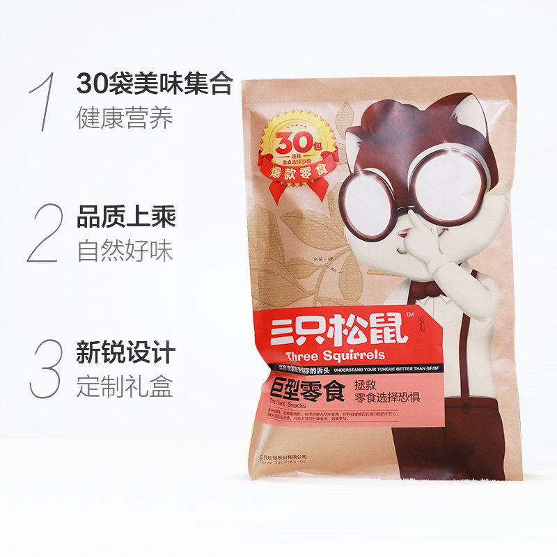 Three squirrels giant snack gift pack 30 bags 3501g snacks Snack snack snack food Net Red burst style gift