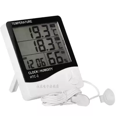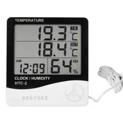 HTC-2 electronic thermohygrometer with wire monitor indoor and outdoor baby clock alarm clock double temperature with suction cup