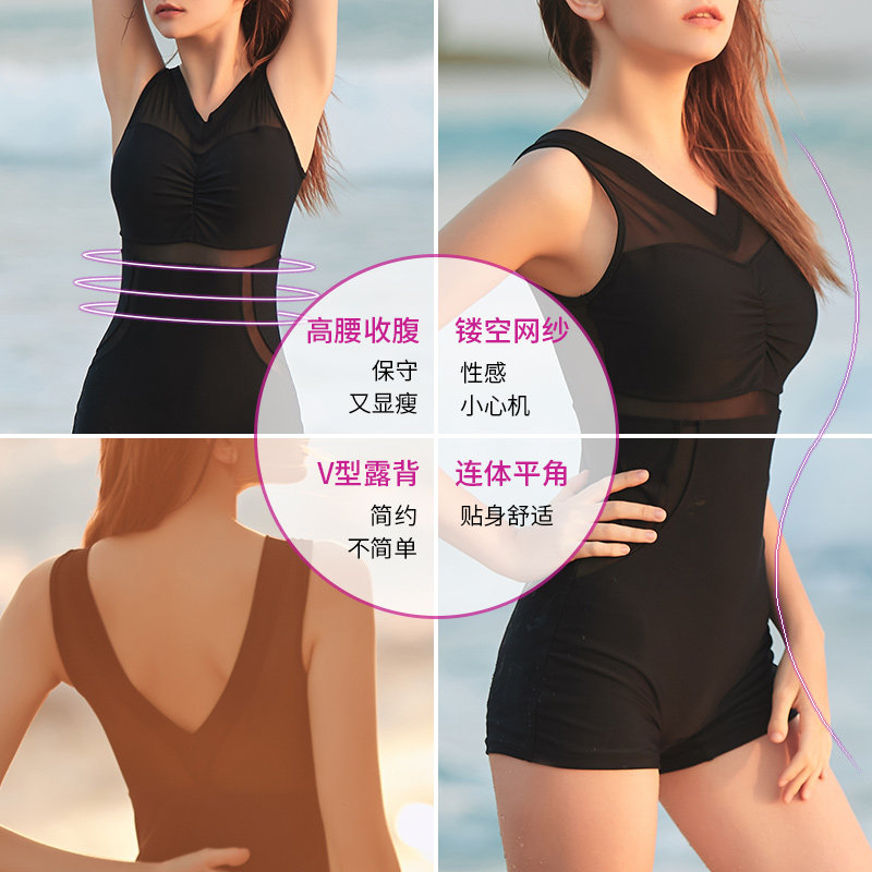 Heat wave swimsuit women 2021 new hot spring swimsuit women v-neck conservative cover belly conjoined flat angle slim swimsuit