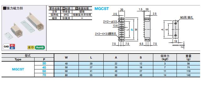 Strong magnetic buckle MGCST30 40 50 70 distribution cabinet door suction magnetic suction HFU16