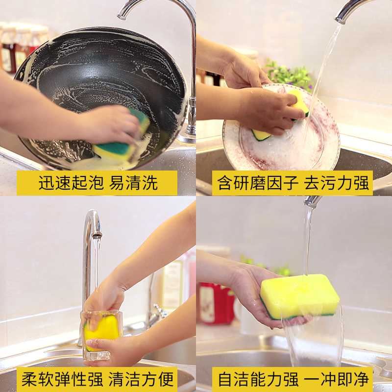 16 pieces of high-density sponge scouring pads 2 packs of 16 pieces of high-density sponge scouring pads