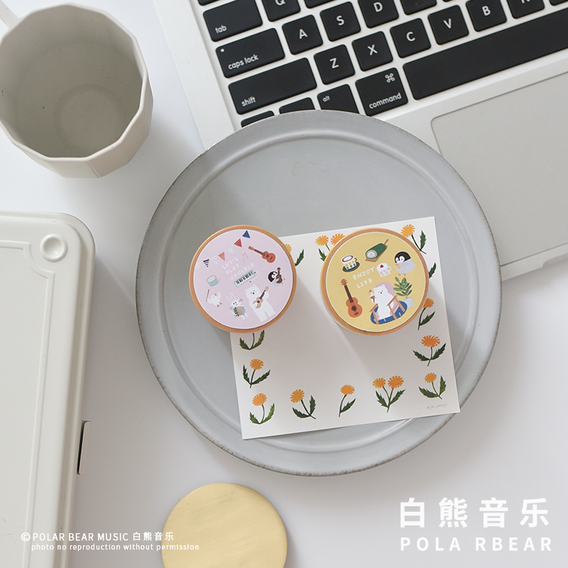 White Bear Music Original Illustrations And Wind Paper Duct Tape Student Hand Ledger Day Style Decoration Creative Yukri Cuisine