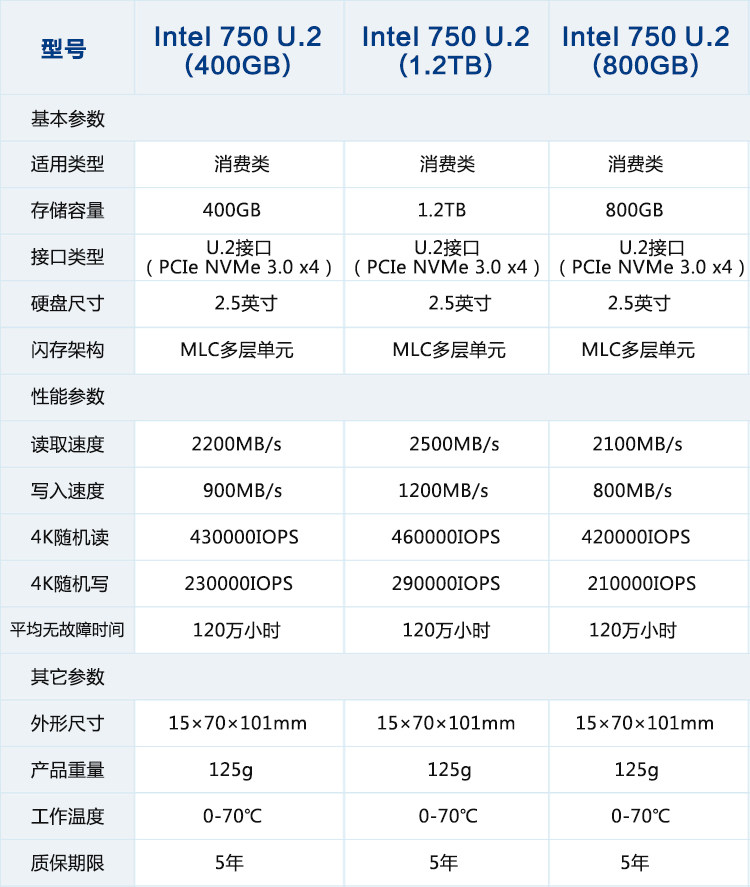 Intel Intel 750400 G 1 2T MLC SSD NVMe Solid State Hard disc U 2 PCIe M 2