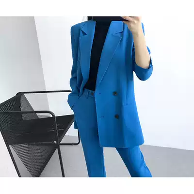 2020 autumn British style blue casual suit suit female Korean temperament nine-point pants suit fashion two-piece suit