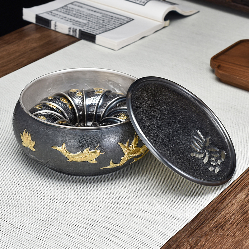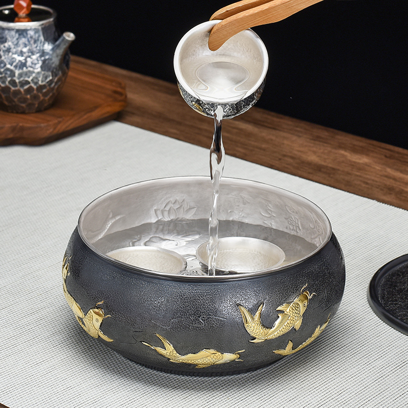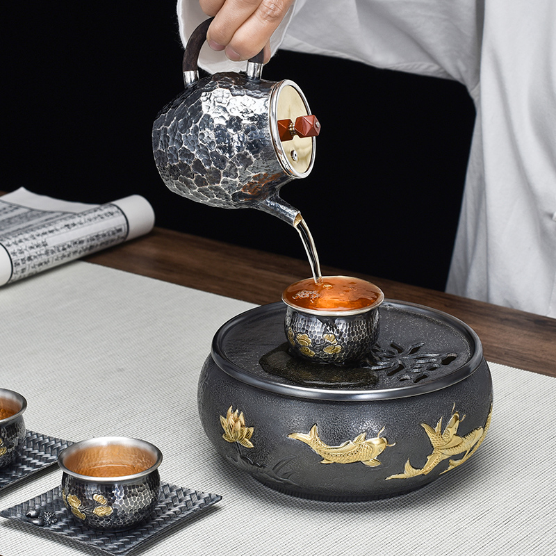 Silver instrumental era years with dry foam table pure silver tea tray pot bearing foot silver 999 handmade tea sea tea washed silver tea set