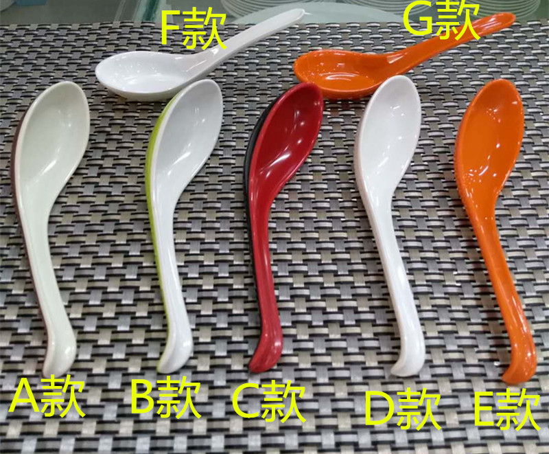 A Sum Click white bicolor spoon A5 material B subsection green white bicolor spoon A5 material C section black red bicolor spoon A5 material D section of white hook spoon A5 material E Orange Color Hook Spoon A5 Material F WHITE SPOON A5 stock G