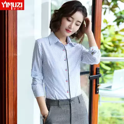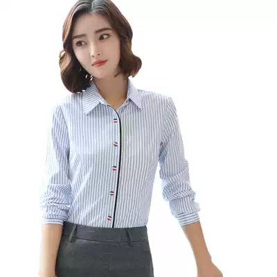 Professional striped shirt women's autumn long-sleeved 2021 new Korean fashion temperament white shirt overalls top