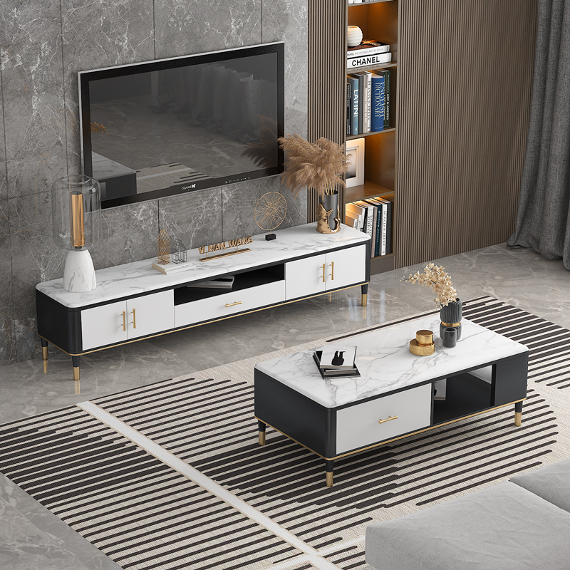 Light Extravagant Rock Board Tea Table TV Cabinet Composition Modern Minima Living Room Nordic Marble TV Enclosure Small Family