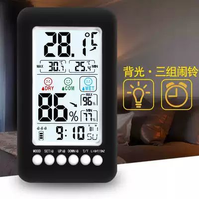 Dry and wet thermometer household baby room indoor creative precision alarm clock high precision wall-mounted electronic temperature and hygrometer