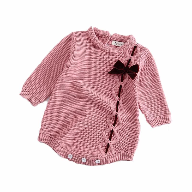 2018 foreign trade autumn and winter children's clothing baby knitted romper girl baby bow jumpsuit long-sleeved romper