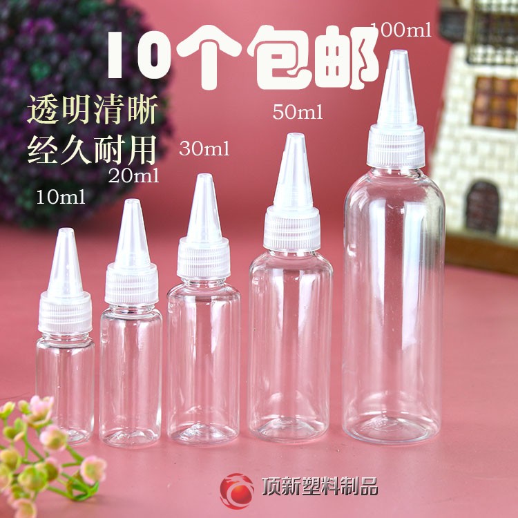 Liquid bottle 100ml transparent pointed mouth bottle PET plastic drop bottle squeeze watering kettle painting pigment sub-bottling