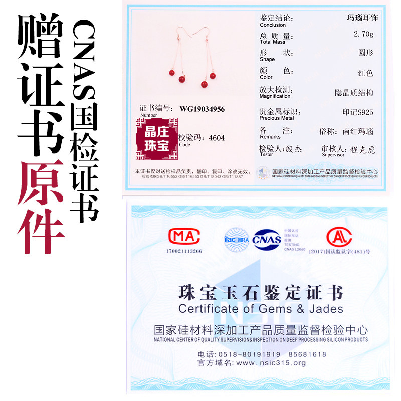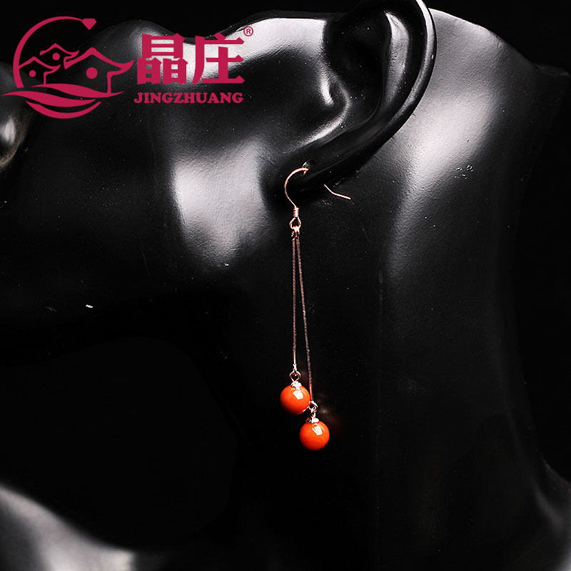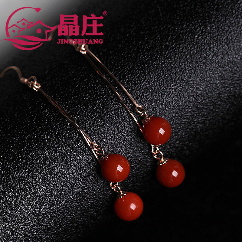 Gift certificate Natural south red agate drop earrings female s925 silver plated 18k rose gold simple long temperament ear line