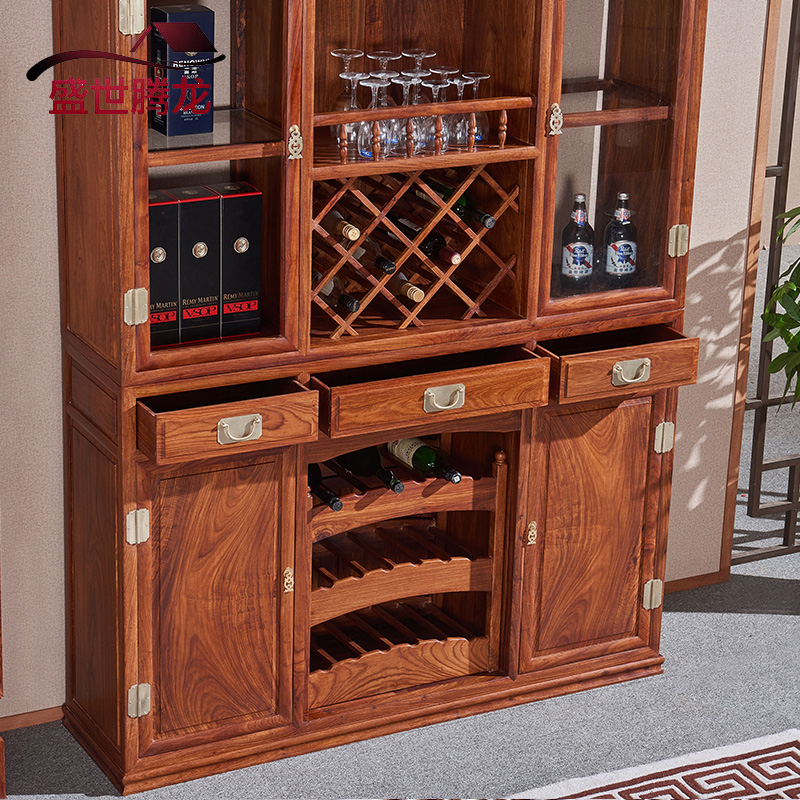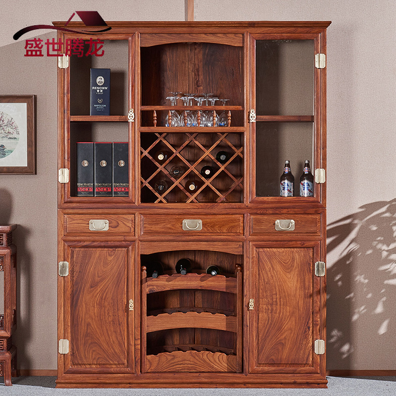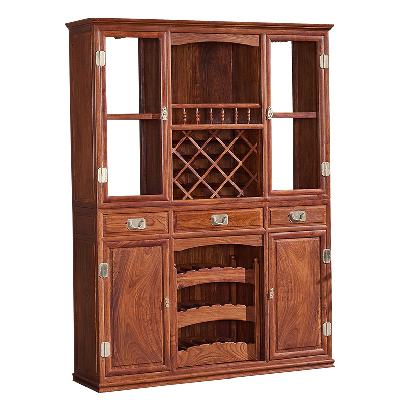 Mahogany wine cabinet new Chinese style hedgehog red sandalwood display cabinet rosewood partition cabinet solid wood dining edge wine cabinet glass cabinet