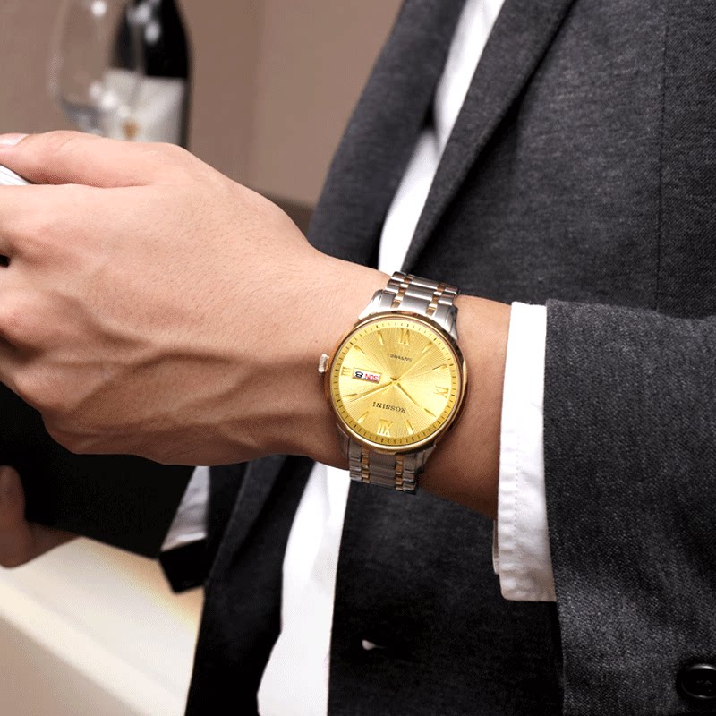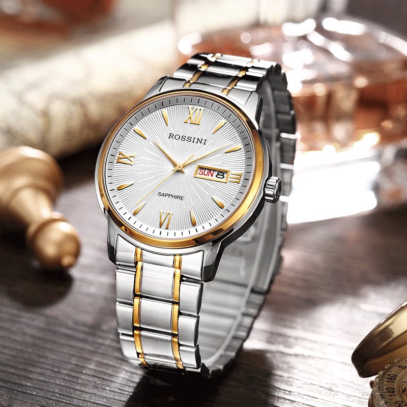 Rossini Official Watch Men's Business Casual Quartz Watch Stainless Steel Waterproof Men's Watch Fashion Men's Watch 5723