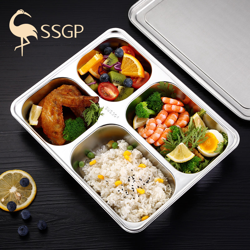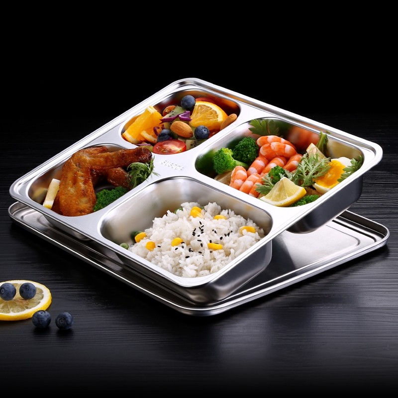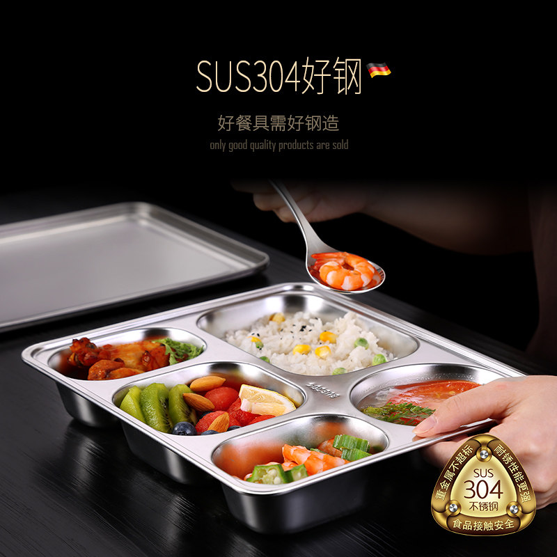 German grid plate 304 stainless steel separation canteen students office workers lunch box adult four grid fast food plate