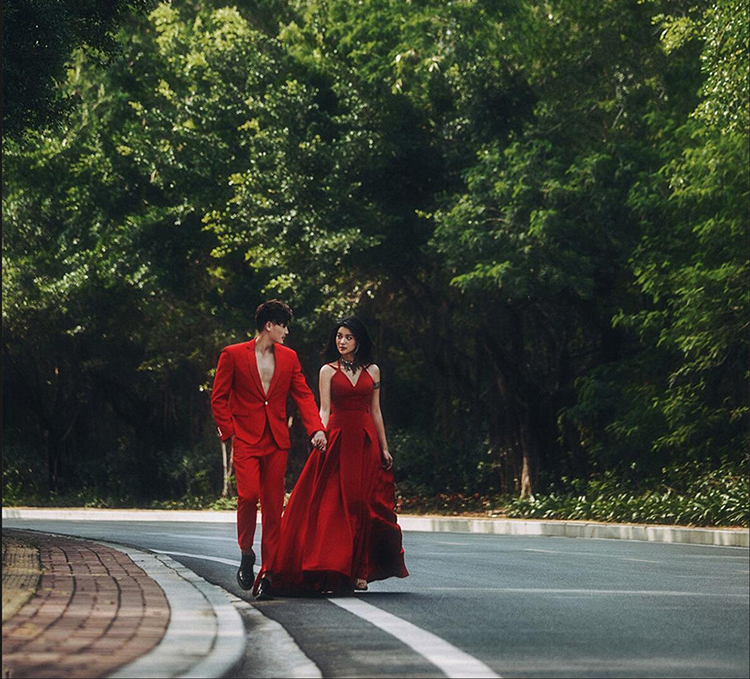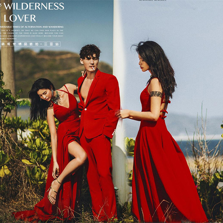 Photo gallery themed clothing 2022 new Brigade slapping red harness Dress Lovers Street Pat personality Write a real trailing wedding dress