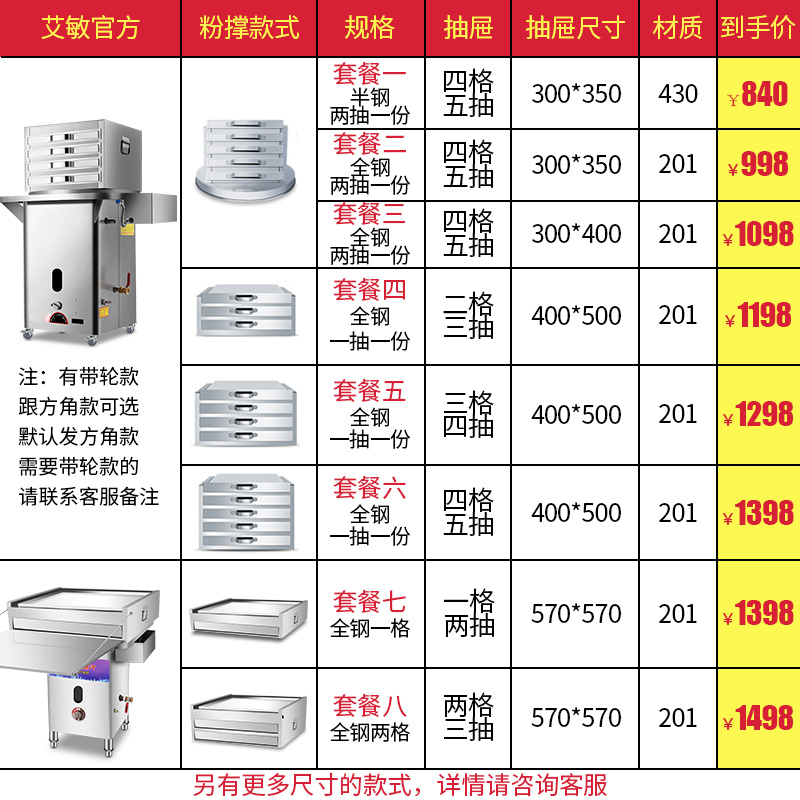 Ai Min Guangdong Stone Grinding Intestine Powder Machine Energy Saving Gas Steam Boiler Steamed Sausage Powder Raenteric Machine Breakfast Commercial Swing Stall Drawer Type.