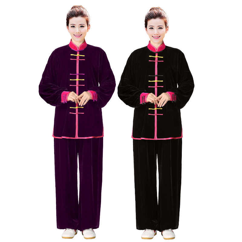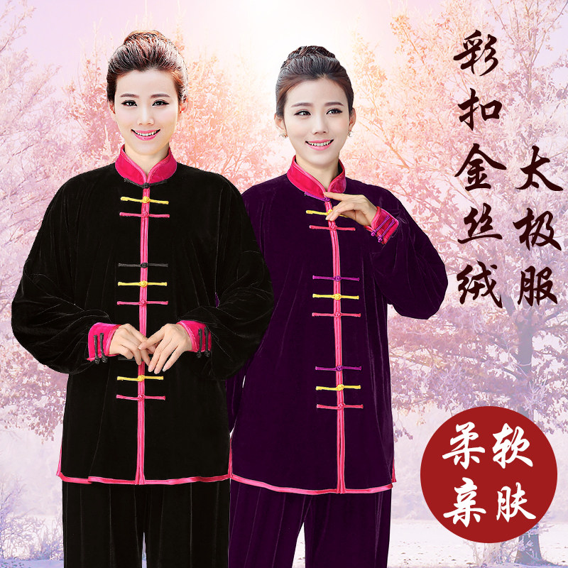 Tai Chi-ji wolf female color button thickened in autumn and winter without pouring South Korean wolf martial arts to persuade Taiji boxing suit