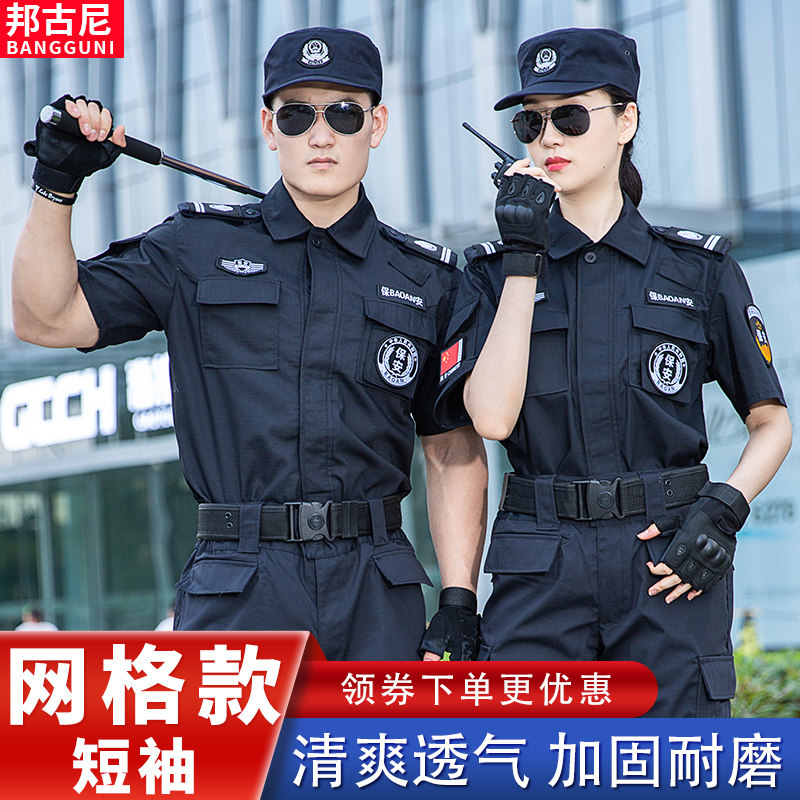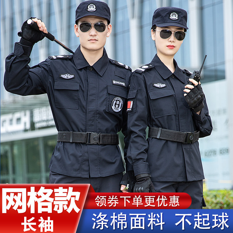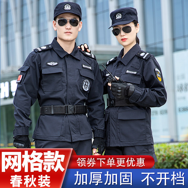 Security overalls set men's spring and autumn grid training uniforms summer short sleeves special training long sleeves duty training uniforms