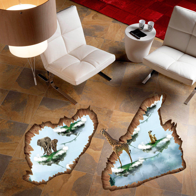 Creative Kitchen Bathroom Makeup Room Ground Tile Decoration Self-Adhesive Waterproof Sticker Personality Creative Room Wall Stickler