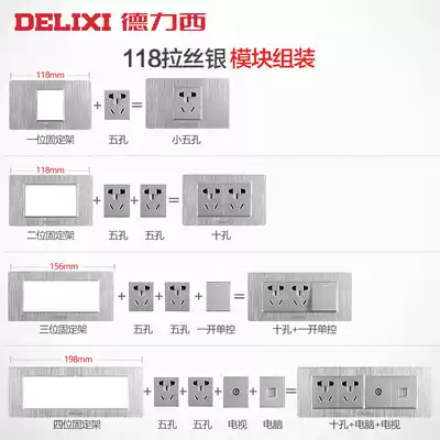 Delixi 118 type silver switch socket 12 hole 9 hole computer cable CCTV socket large silver