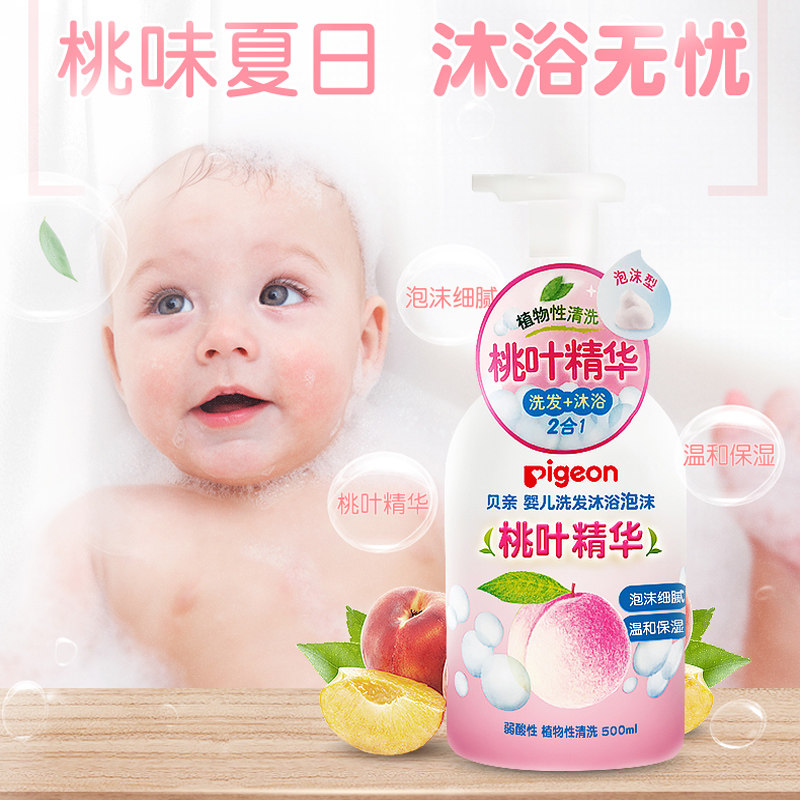 Baby Wash 2 in 1 Newborn Baby Kids Shampoo Shower Gel Foam Peach Leaf Extract 500ml
