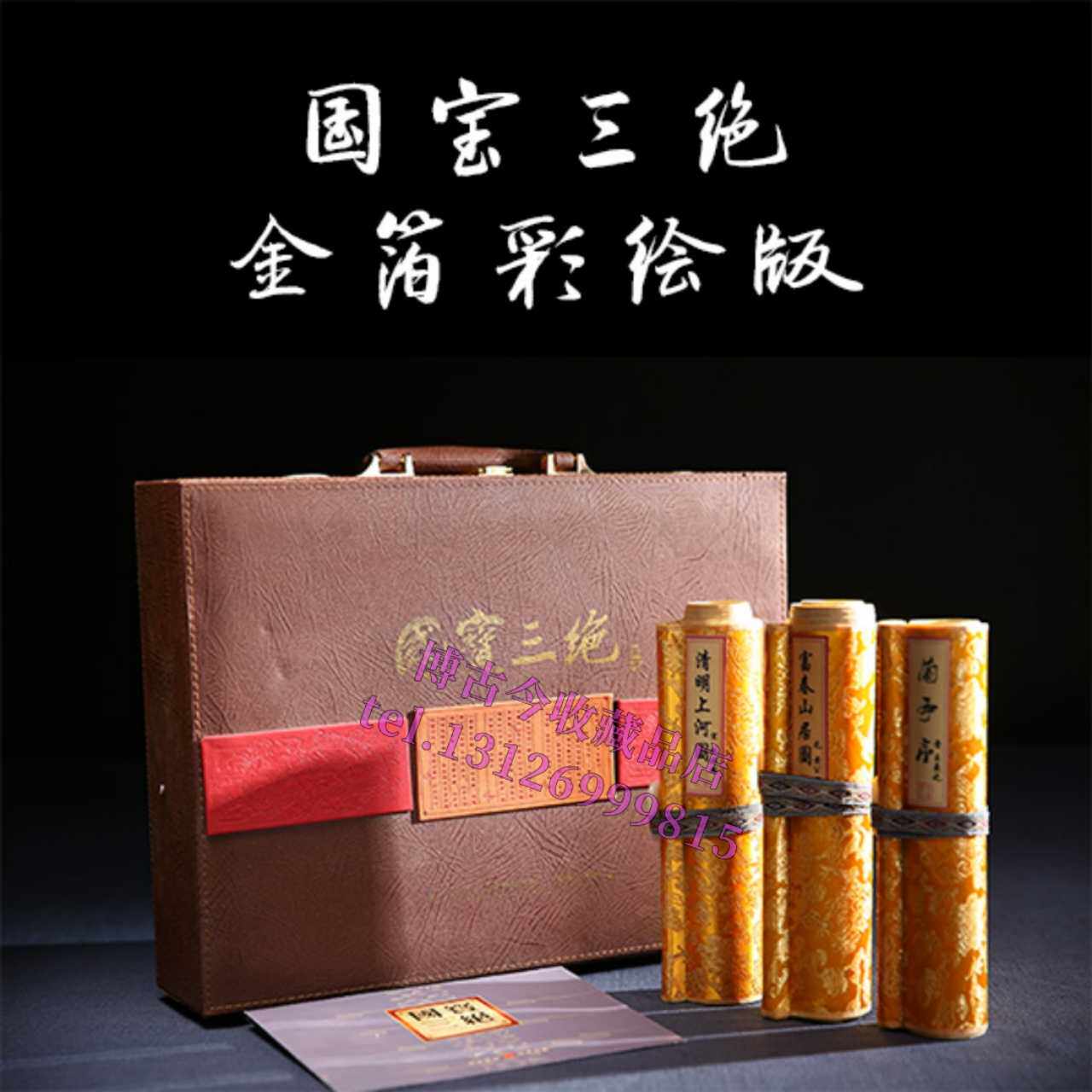 Gold-foil painted national treasure Three Jedi paintings and famous painting scroll painting Qingming Upper River Qianshan Fuchun Mountain Gutu version of painting