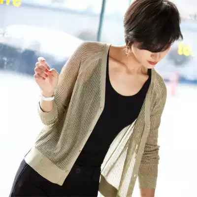 Air-conditioned shirt women's cardigan outer summer new wild short bright silk sunscreen outer cloak sweater jacket thin section