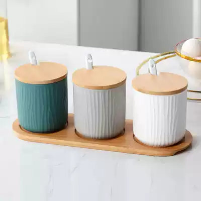 Ceramic seasoning box Nordic household seasoning jar bottle salt sugar taste Jar Kitchen supplies combination set seasoning jar