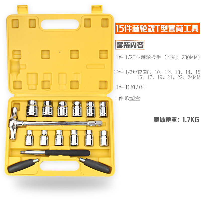 T type green labor-saving wrench 15 piece ratchet T sleeve set 24 teeth straight shank big flying T type ratchet wrench