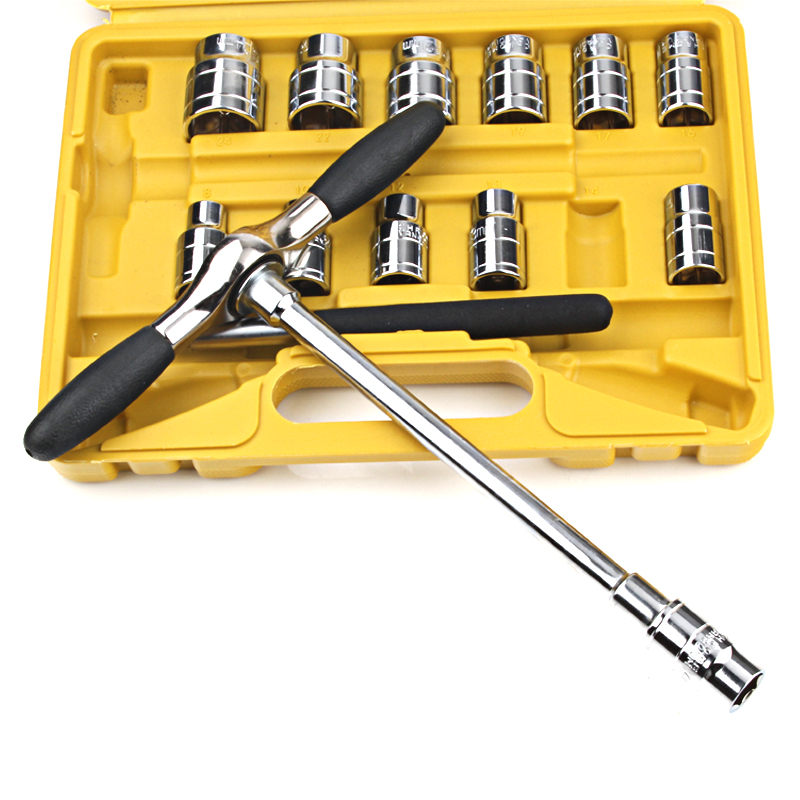 1 2 sleeve wrench with exchangeable head T-chrome vanadium F type steering wrench Fast ratchet bending lever slide bar long contact