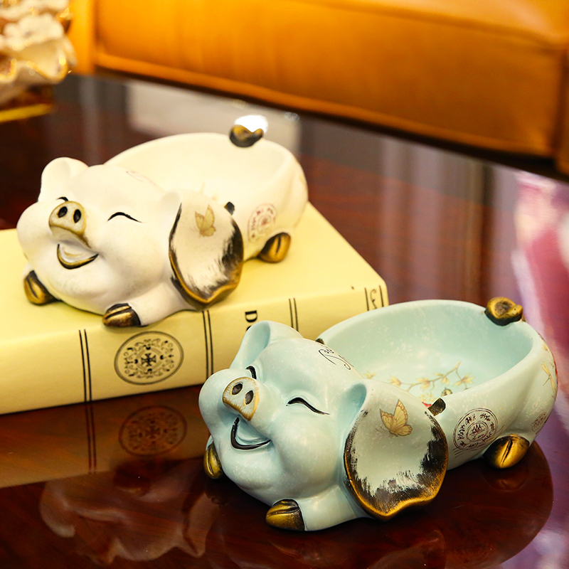 European lucky pig ashtray Creative personality cigarette dish Household American cafe hotel animal ashtray decoration