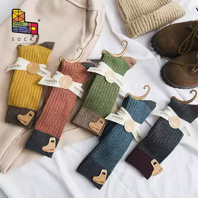 Bubble socks women's autumn and winter color pattern thick needle cotton stockings Korean version of retro college style socks