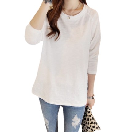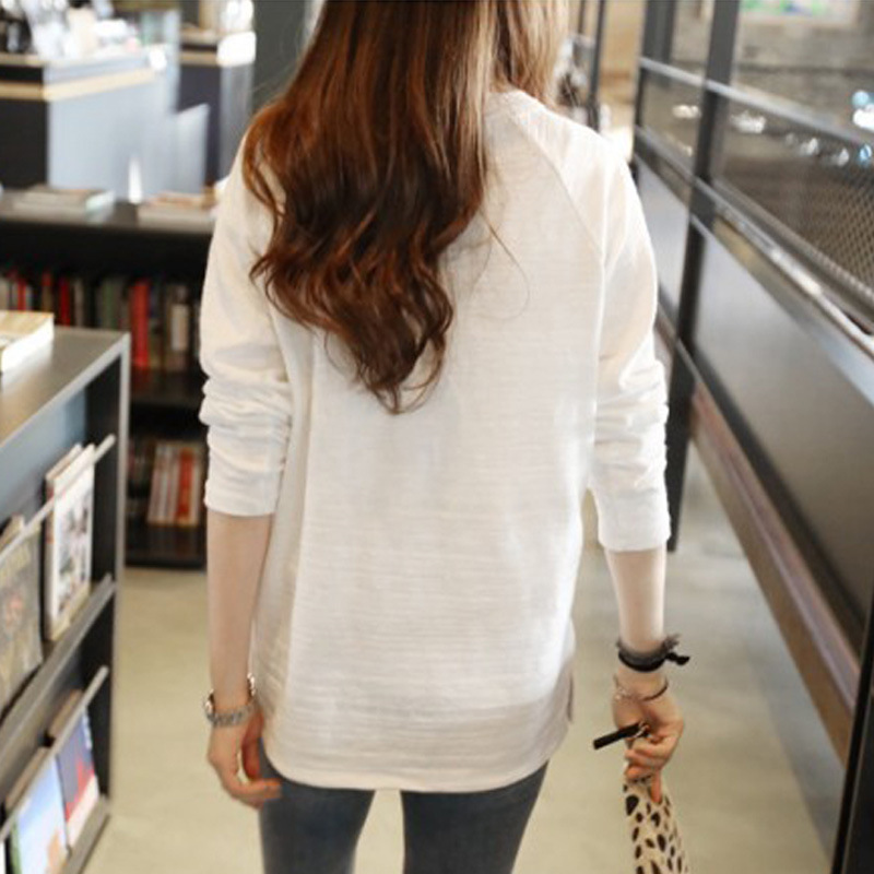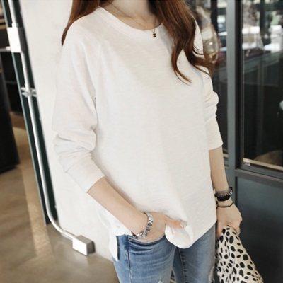Inner solid color underwear versatile early fall winter women's top cotton Korean version white T-shirt women loose chic long sleeves