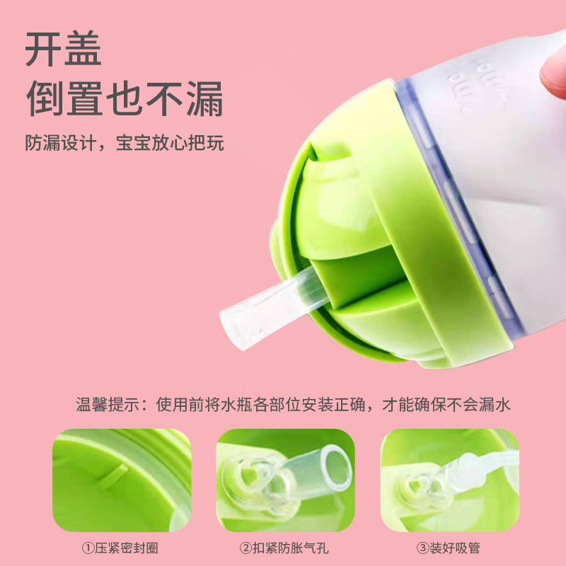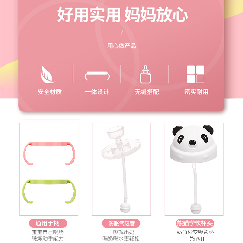 (Pink) Learning Drinking Straw Head (Green) Middle Ring 250ml Straw (Suitable Straw Brush) (Pink) Straight Handle (Green) Straight Handle Panda Learning Drinking Straw Cup Head Milk