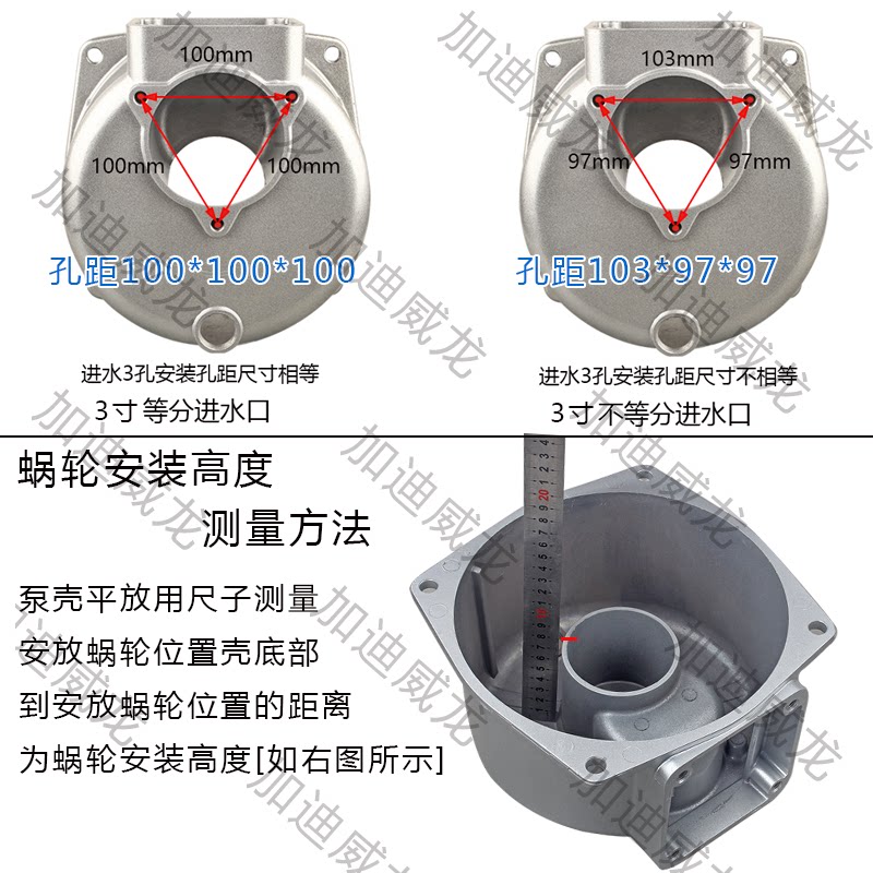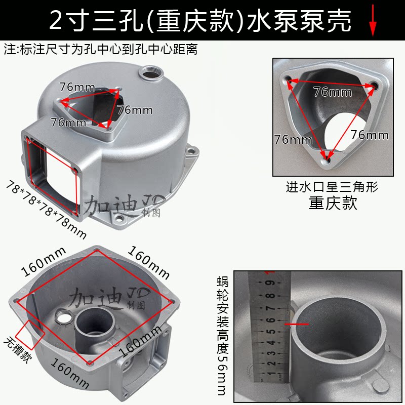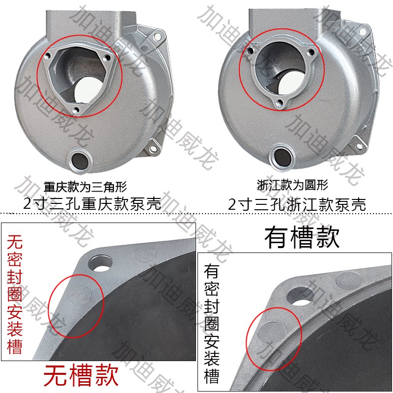 2-inch three-hole pump casing (Chongqing model) 2-inch three-hole pump casing (Zhejiang model) 2-inch four-hole pump casing 2-inch high-lift (single impeller) pump casing slot (